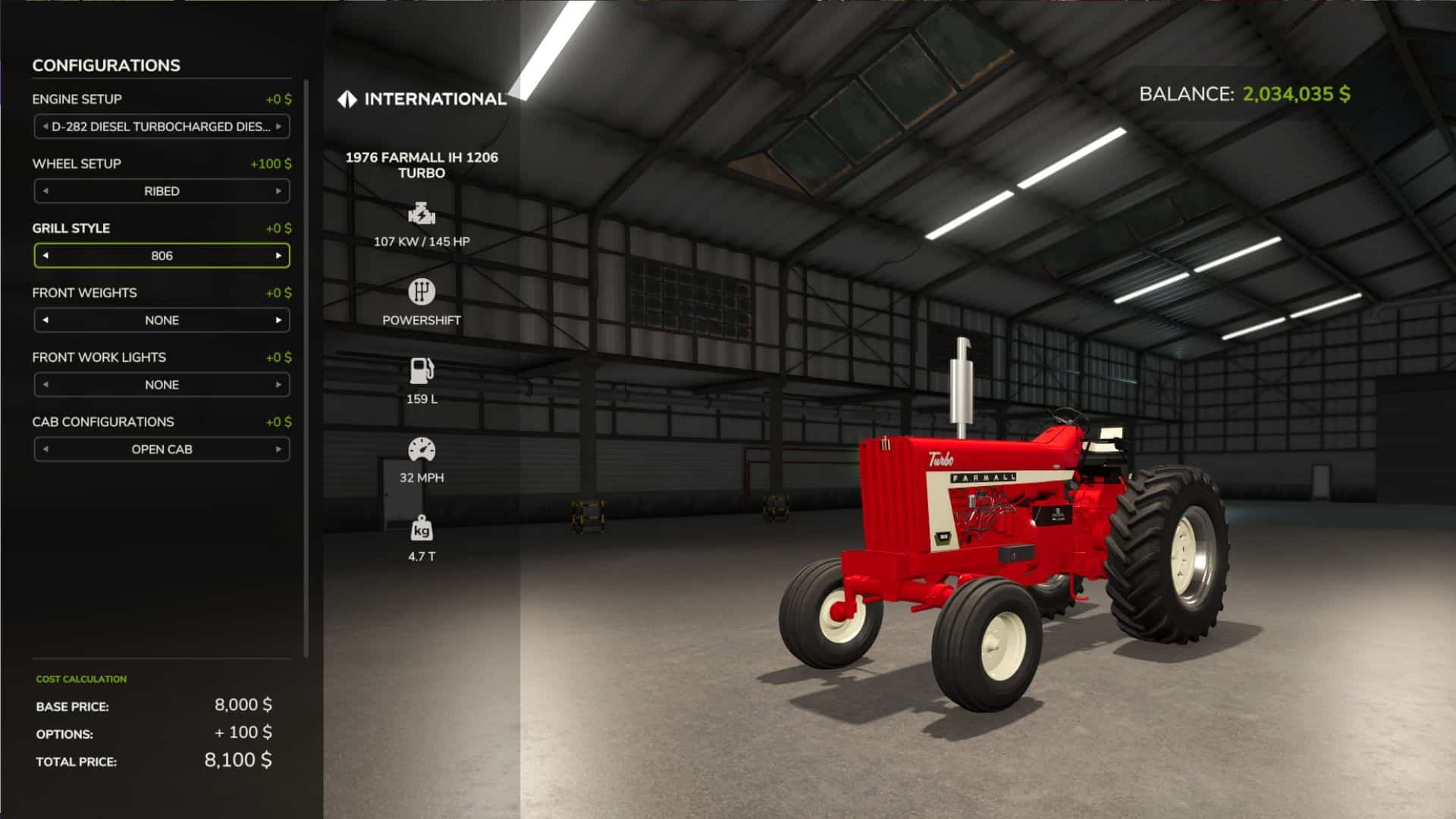 Added a 8 speed manual transmission. Fixed placement of the hitch connecting hoses. We added the option to have the Farmall hood badge or the International hood badge.
