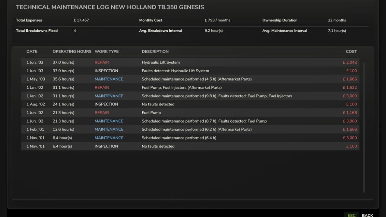 The workshop menu now includes inspection, repair, maintenance, and overhaul options. Every procedure takes actual time to complete—instant repairs are a thing of the past!