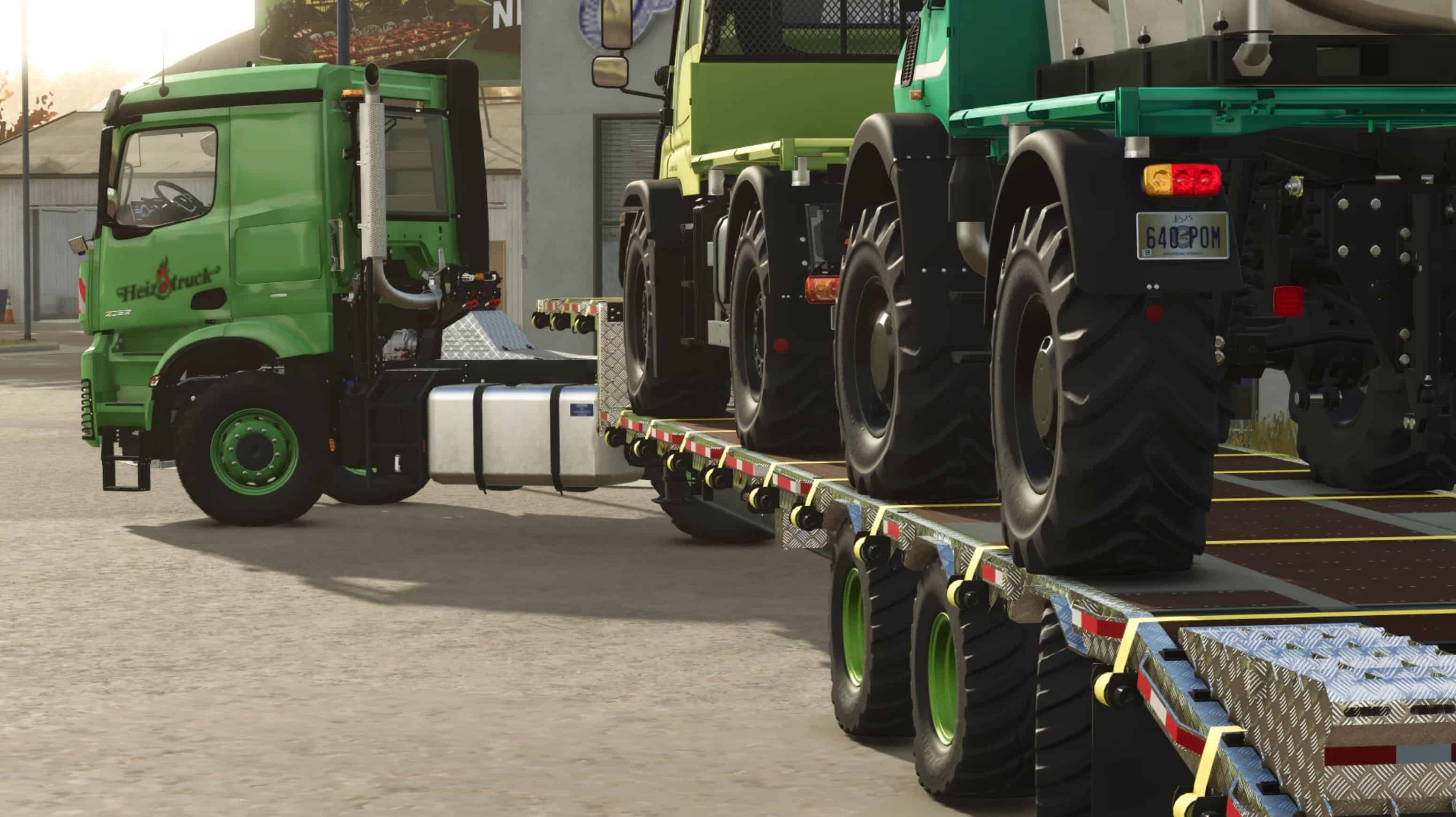 A pack of various trailers for “Agro” semi tractors like the Heizotruck, perfect for use in fields. In addition to the special attacher used in the Heizotruck, the trailers feature increased ground clearance, large off-road tires, and configurable steering axles.