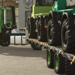 A pack of various trailers for “Agro” semi tractors like the Heizotruck, perfect for use in fields. In addition to the special attacher used in the Heizotruck, the trailers feature increased ground clearance, large off-road tires, and configurable steering axles.