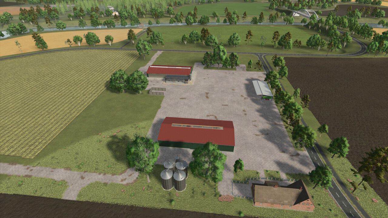 This fictional map along the famous Kiel Canal features 61 fields of various sizes, mostly medium to large. It includes additional crops such as triticale, rye, spelt, silage maize, mustard, mixed rye, humus active, field grass and green rye. Four predefined farms with different animal barns are available. The farms are fully customizable. Two large forest areas are available for forestry. There are also many open spaces to create your own projects. The map includes two biogas plants as well as various productions. There are 11 fixed selling points where you can sell your goods. There are four ways to cross the canal using two ferries and two bridges.