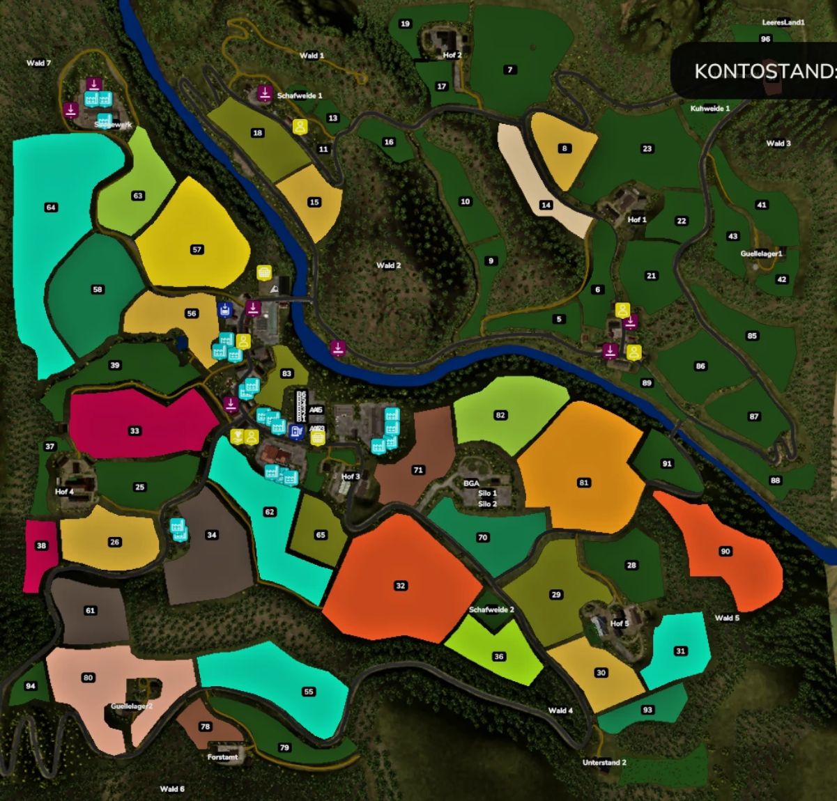Productions: Sawmill/Carpentry, Mill, Bakery, Hay Dryer/Dynamometer, Biogas Plant, AllProd: Sugar/Cans/etc., Cheese Factory