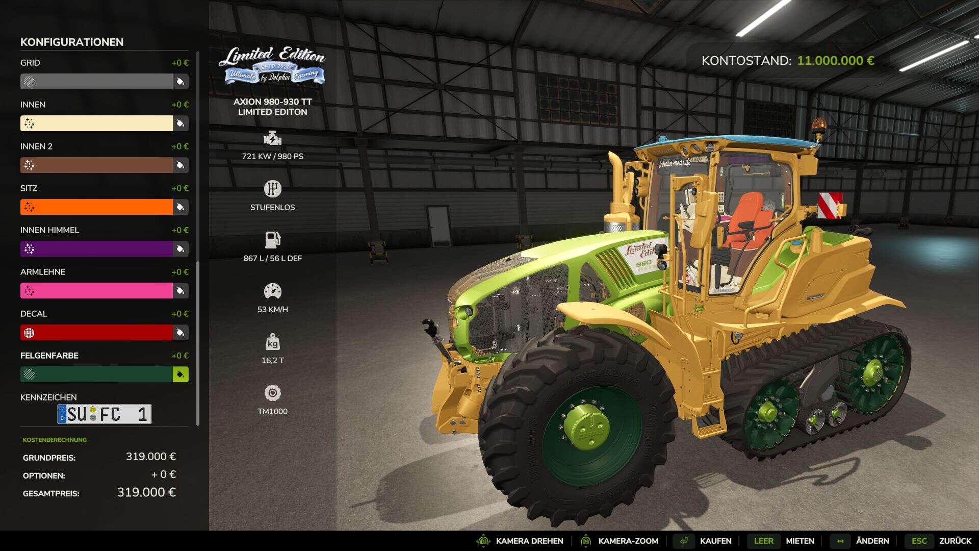 – Decal options: Standard, Limited Edition, Ultimate Farming lettering.