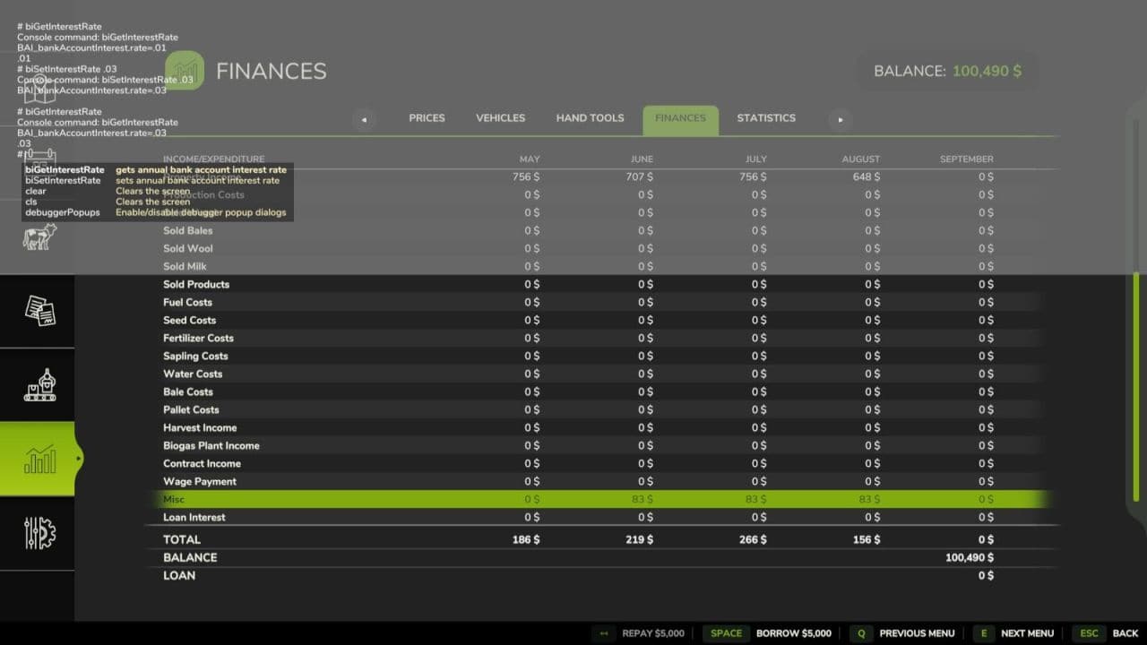 Two dev console commands have been added to control the interest rate: