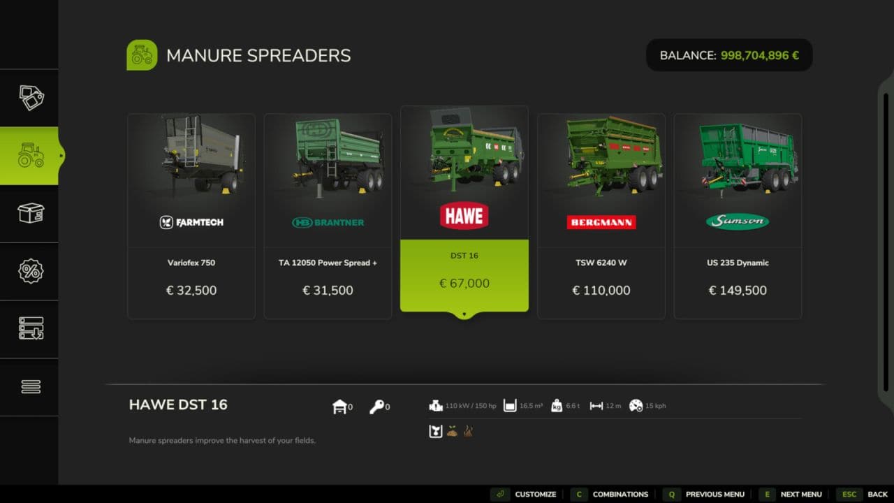 • Manure spreader is compatible with manure and compost, including a suitable spreading pattern for compost