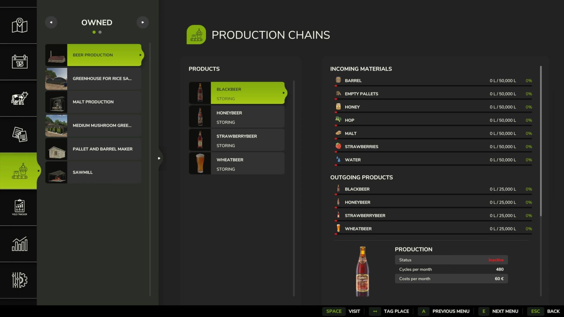 – A brewery for the production of four types of beer: honey beer, strawberry beer, wheat beer, and dark beer.
