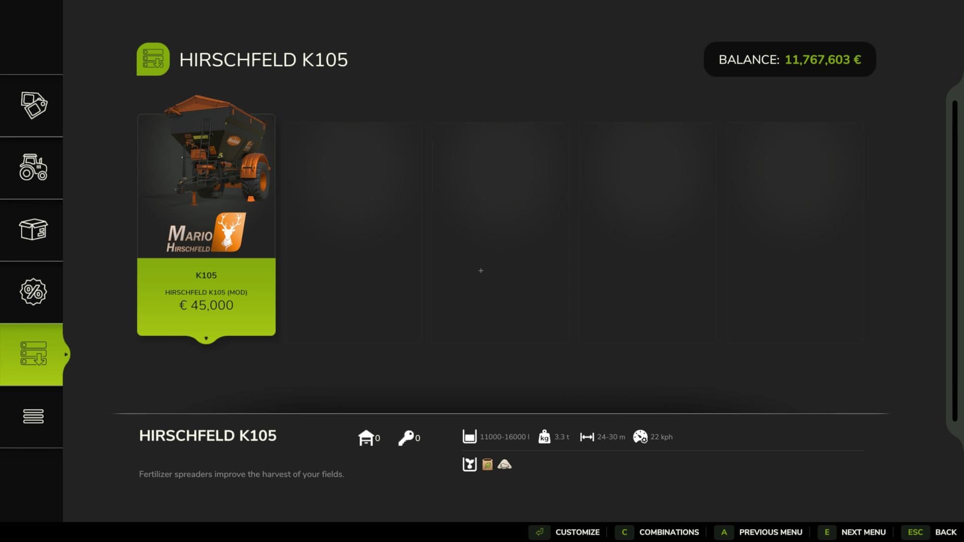 This FS25 modification gives you the proven Bredal lime and fertilizer spreader in a specially adapted Hirschfeld edition . The mod has been visually and technically optimized and integrates perfectly into existing Hirschfeld vehicle sets.