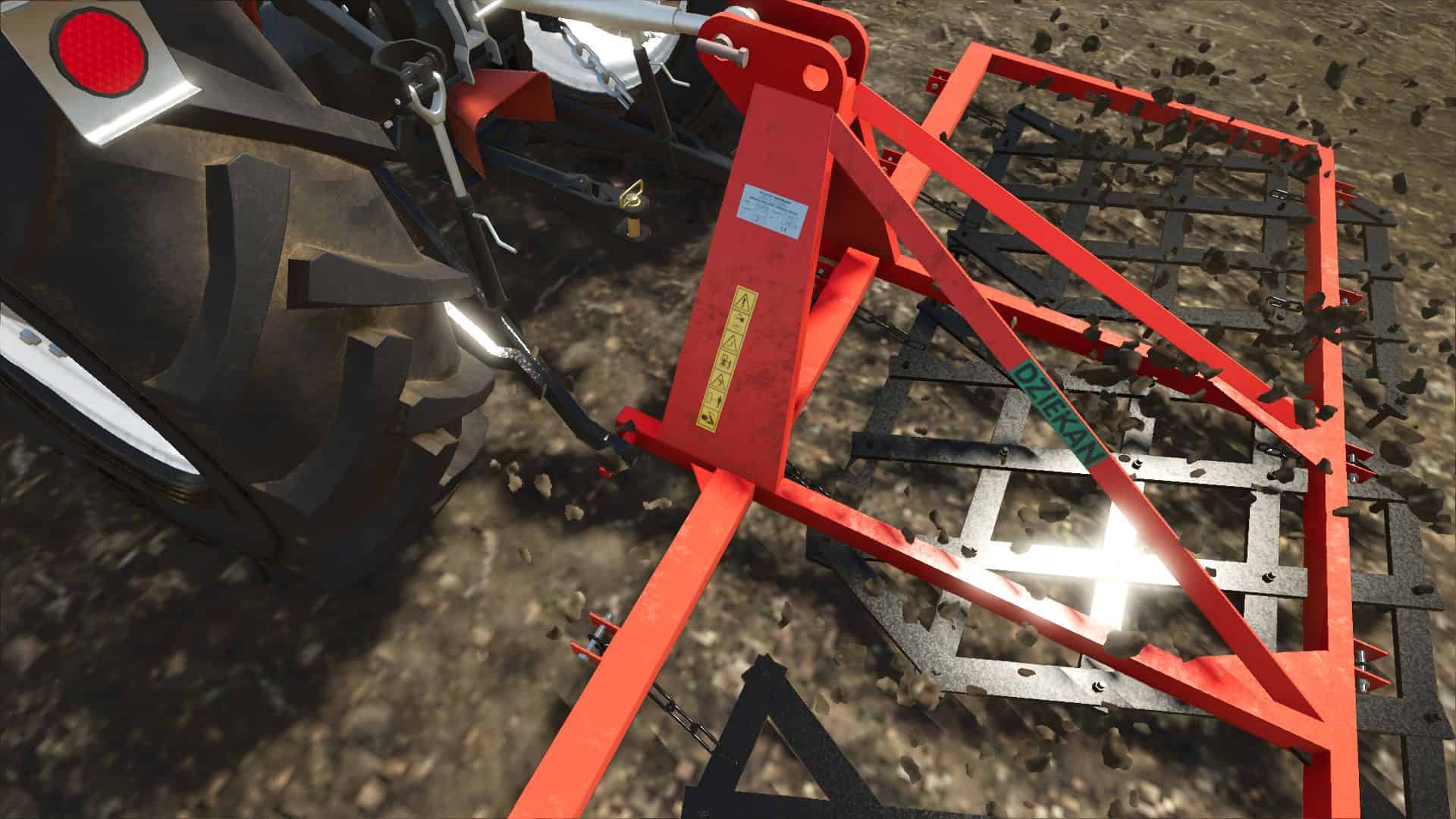 These are Polish 3-field medium harrows. They have a new model made by me. It is compatible with the More Realistic mod. It has 2 color configurations, 4 detail configurations and a tire weight configuration. In addition, it has an attachment animation and the fields of weapons move while driving.