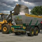 A set of fertilizer spreaders manufactured with a stainless steel body, making them lightweight and increasing their lifespan. Designed to spread lime and fertilizer using a hydraulically driven belt and two discs at a maximum width of 24 meters.