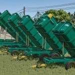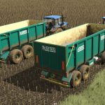 Pack of monocoque tipping trailers manufactured in Spain with commercial headquarters in Poland, Brazil and Morocco. Ideal for transporting grain, silage and manure. The body is reinforced by side ribs with folding rear doors. Light chassis with suspensions and speed brakes to make transportation as safe as possible.