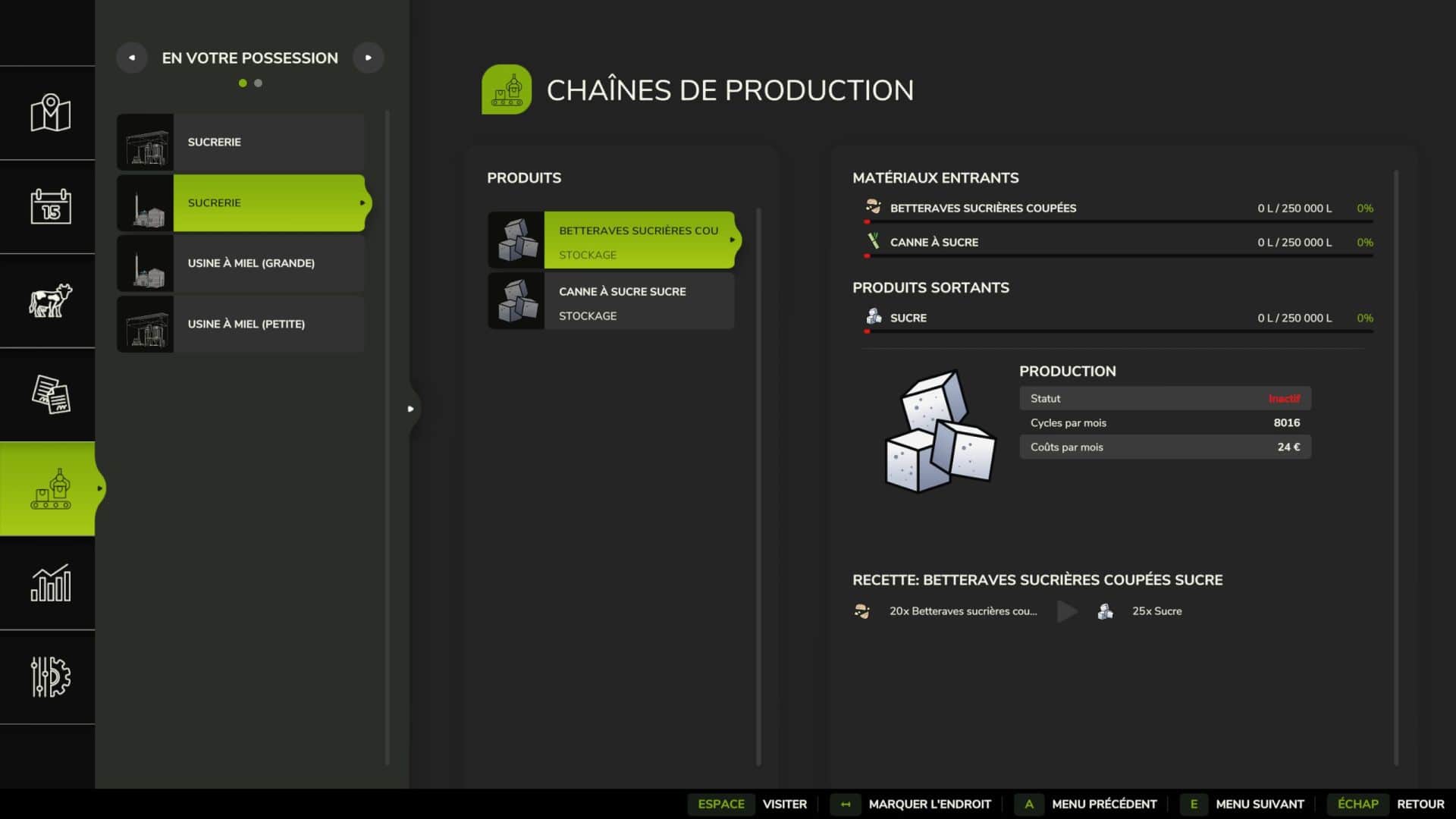 – [2] Sugar cane x10 → Sugar x25
