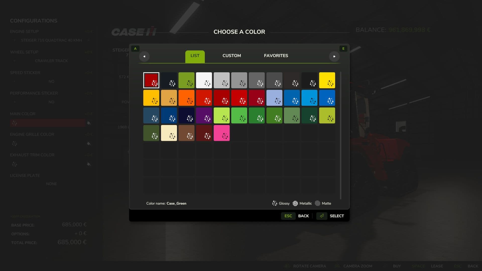 What you have here is a Case IH Steiger Quadtrac 715/785 with front hitch and front PTO, as well as some modifications and configurations. I took the following vehicle from FS25 and modified it.