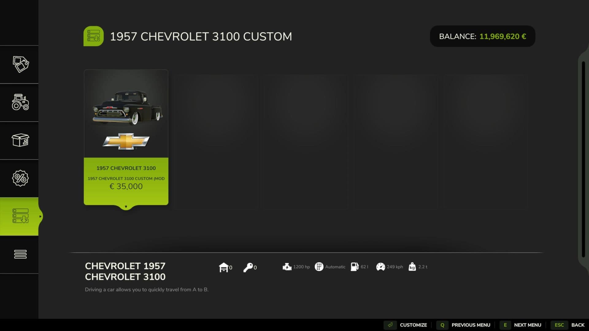 The Chevy 3100 is an old pick-up truck coming straight from the year 1957. Retrofitted with a powerful modern V8 with a Magnuson Supercharger, and with it’s vast choice of colors and decals, rest assured you will have a unique, one-of-one, powerful work beast, ready for whatever task you might have.