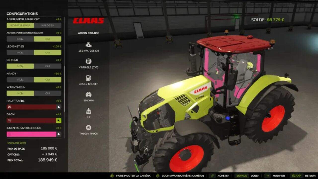 Here, you have a Claas Axion 870-800 reworked by me to have the color configuration that works correctly.