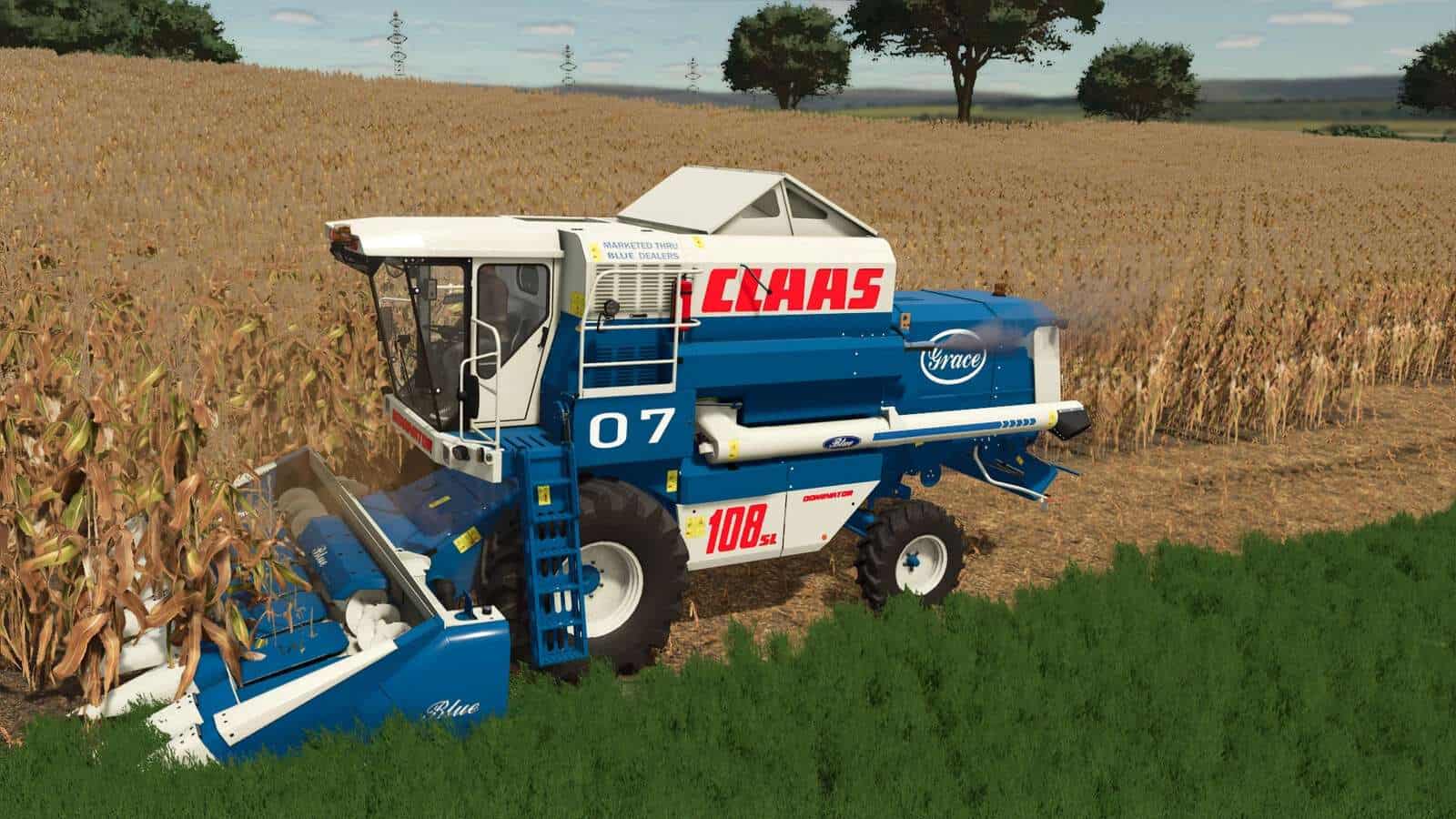 This is a CLAAS Dominator 108 in authentic (genuine colour code) blue colours and a custom engine note as a tribute to the CLAAS Blue 106 of the 70’s and 80’s.