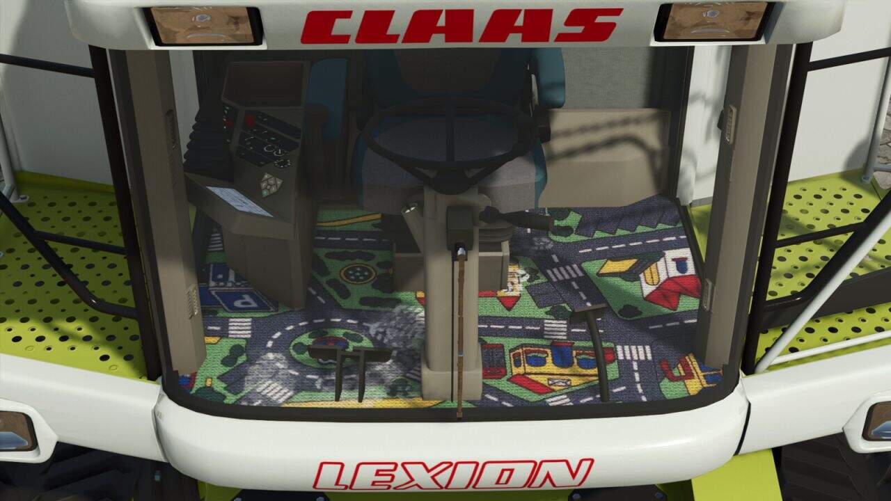 Carpet, Evolution decal, new Terra Trac system, warning stripes, laser pilot, Terra Trac on the small Lexion, Lexion 405 and 415, as well as a camera system.
