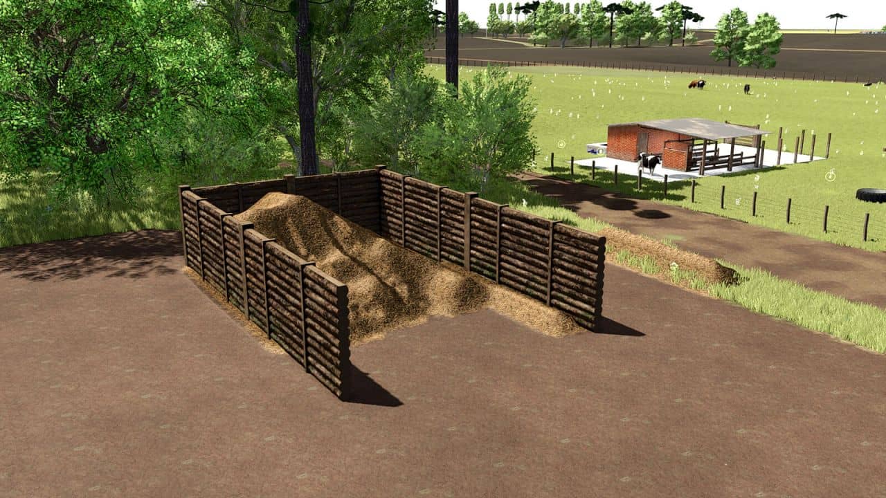 BR Cow Pen with Custom Pasture, Custom Manure Heap, and Fence.