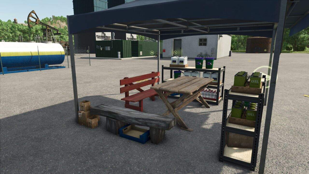 At the small stall, you will sell smaller amounts of oil but at a higher price; in the other two purchase points, you can sell large quantities of pallets. In picture number 2, you can see the entire oil production chain. Fuel, gasoline, and LPG from the refinery can be transported in tankers, sold at the purchase points, and used to refuel vehicles.