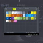 color selection for main color, design color, frame, interior design, interior design 2, armrest/belt, seat, front loader console, engine grille, lettering and rim color, and