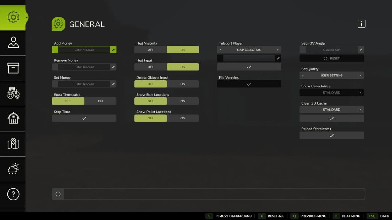 – Teleport: Quickly move yourself or vehicles around the map by selecting a location on the map, by field number or x/z coordinates.
