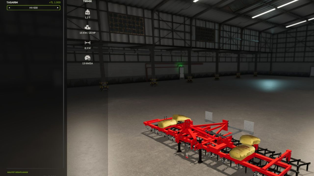 Efe Tirmik v1.0 FS25 Mods | 2 Jan, 2026 Efe Tirmik v1.0 Price: 7 250 € – 9 250 € Max. working speed: 13 kph Required power: 20 hp Working width: 4.3 m – 6.3 m – 8.3 m Author: UMUT EFE MODDING This content was uploaded by our website visitors. If you notice any errors, please let us know.