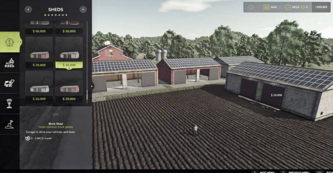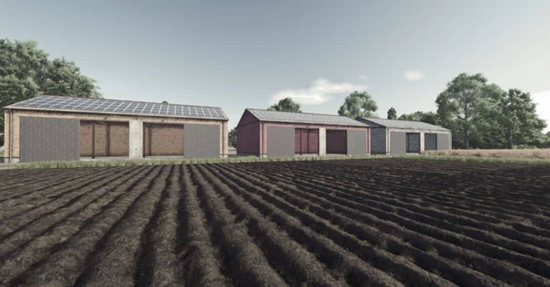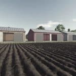 The “Farm Garage Pack” mod for Farming Simulator 25 includes a variety of functional garages, offering flexible storage solutions for vehicles, tools, and equipment across your farm.