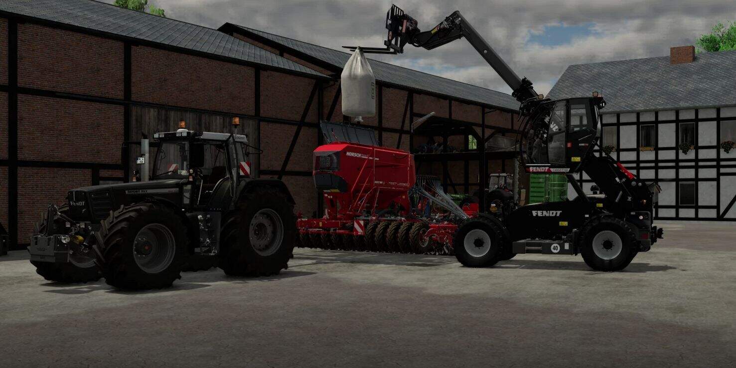 Standard Fendt Cargo T740 and Sennebogen 340G telescopic handlers from Farming Simulator 25 with add-ons