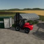Multifunctional container for storing and transporting various product types. It works similarly to the base game wood containers but supports different cargo types and automatically fills when compatible pallets are brought close. When purchasing the container, you can select the product type it will store, allowing you to adapt it to your production or logistics needs.