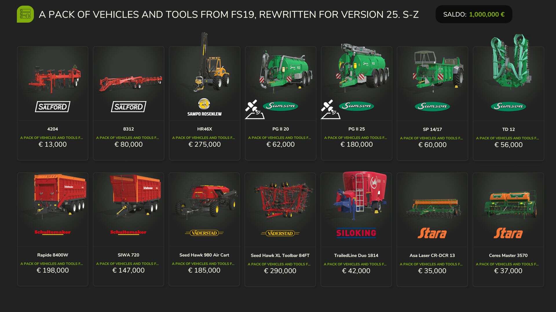 Vehicles and Tools pack from version 19 rewritten to version 25. Machines from companies starting with letters S-Z.