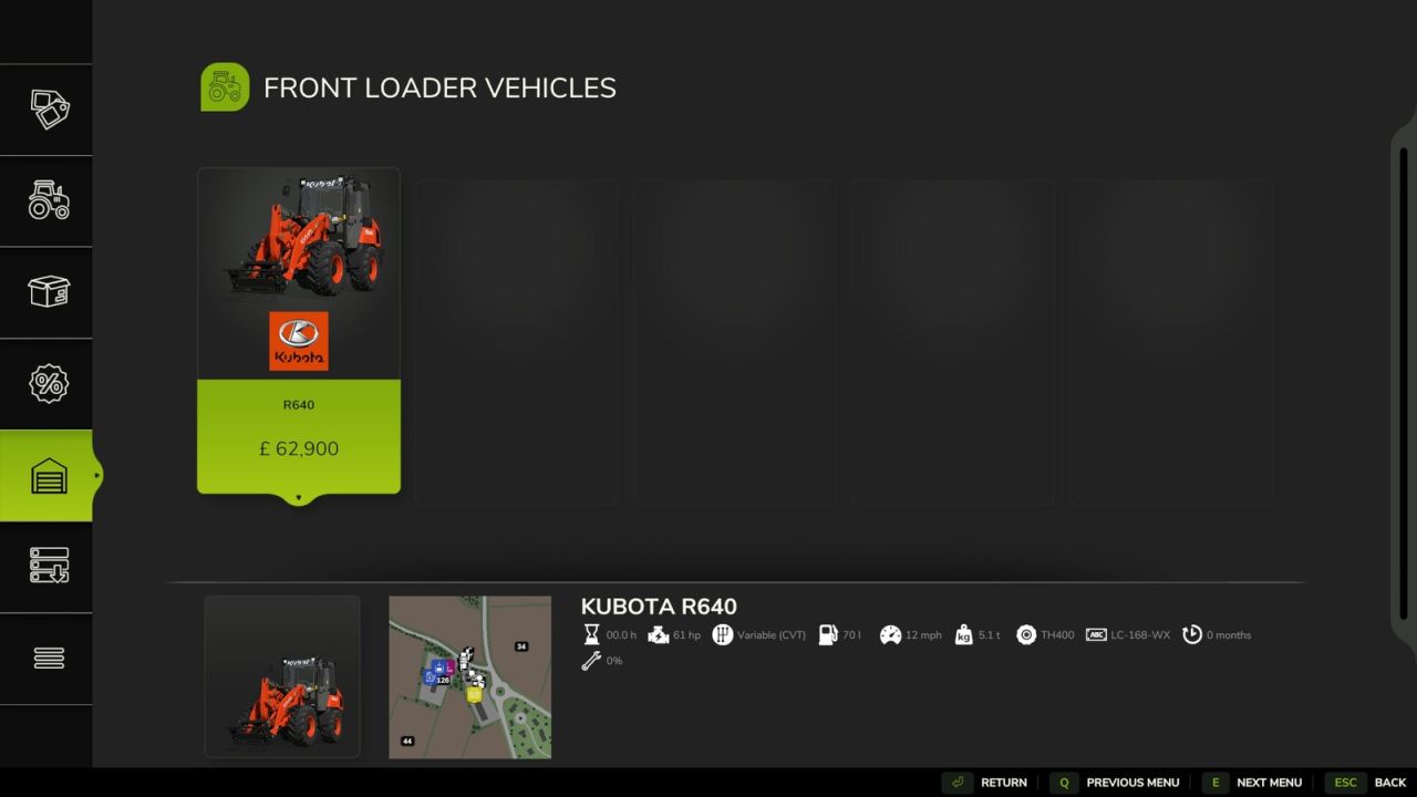 A simple menu to view your owned and leased vehicles, similar to that seen in FS22.