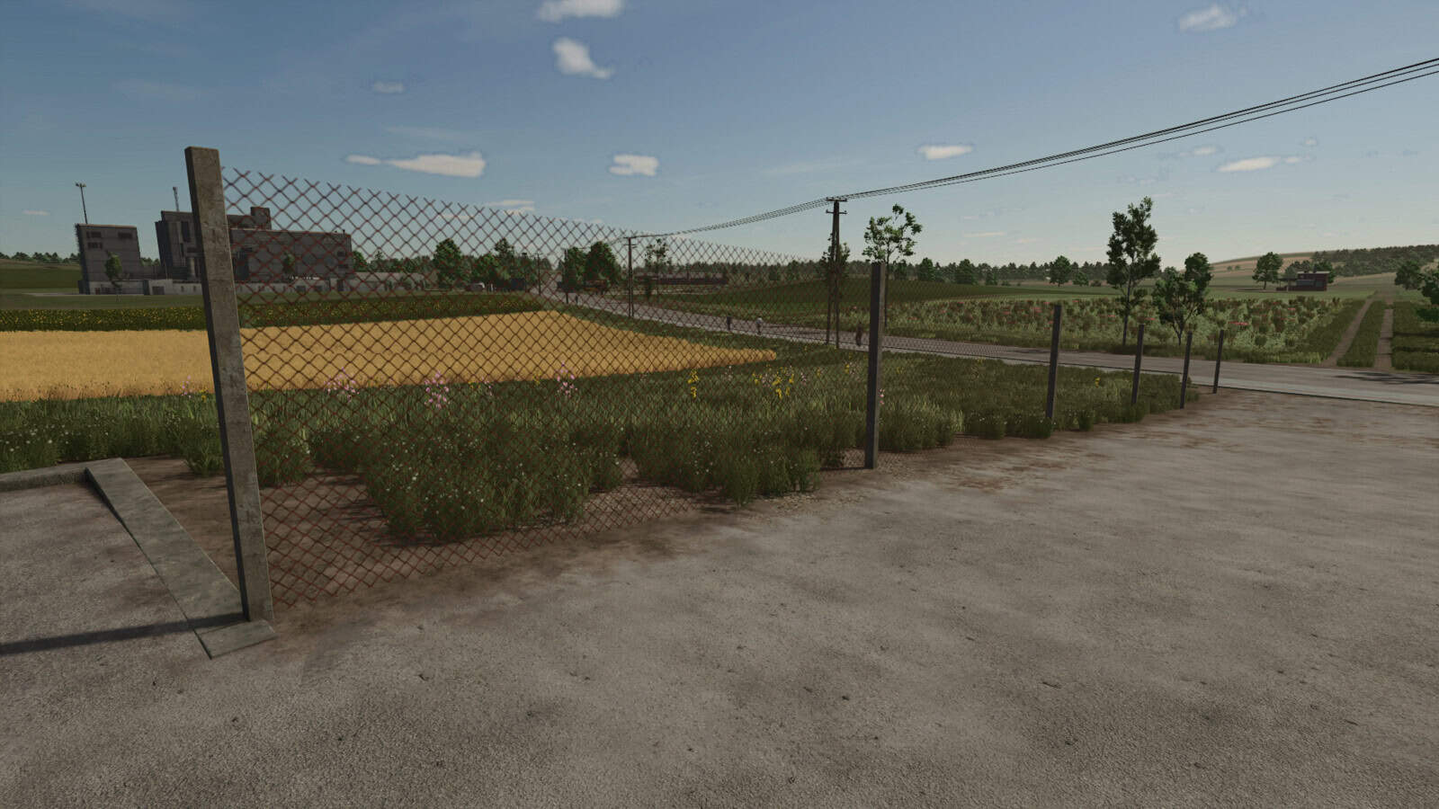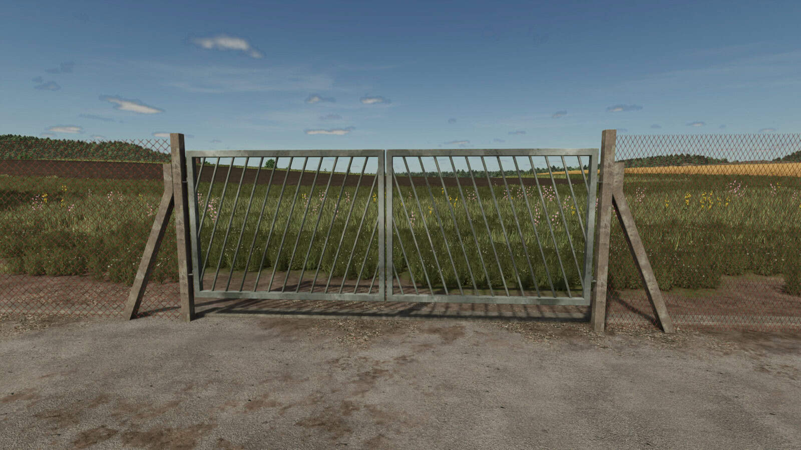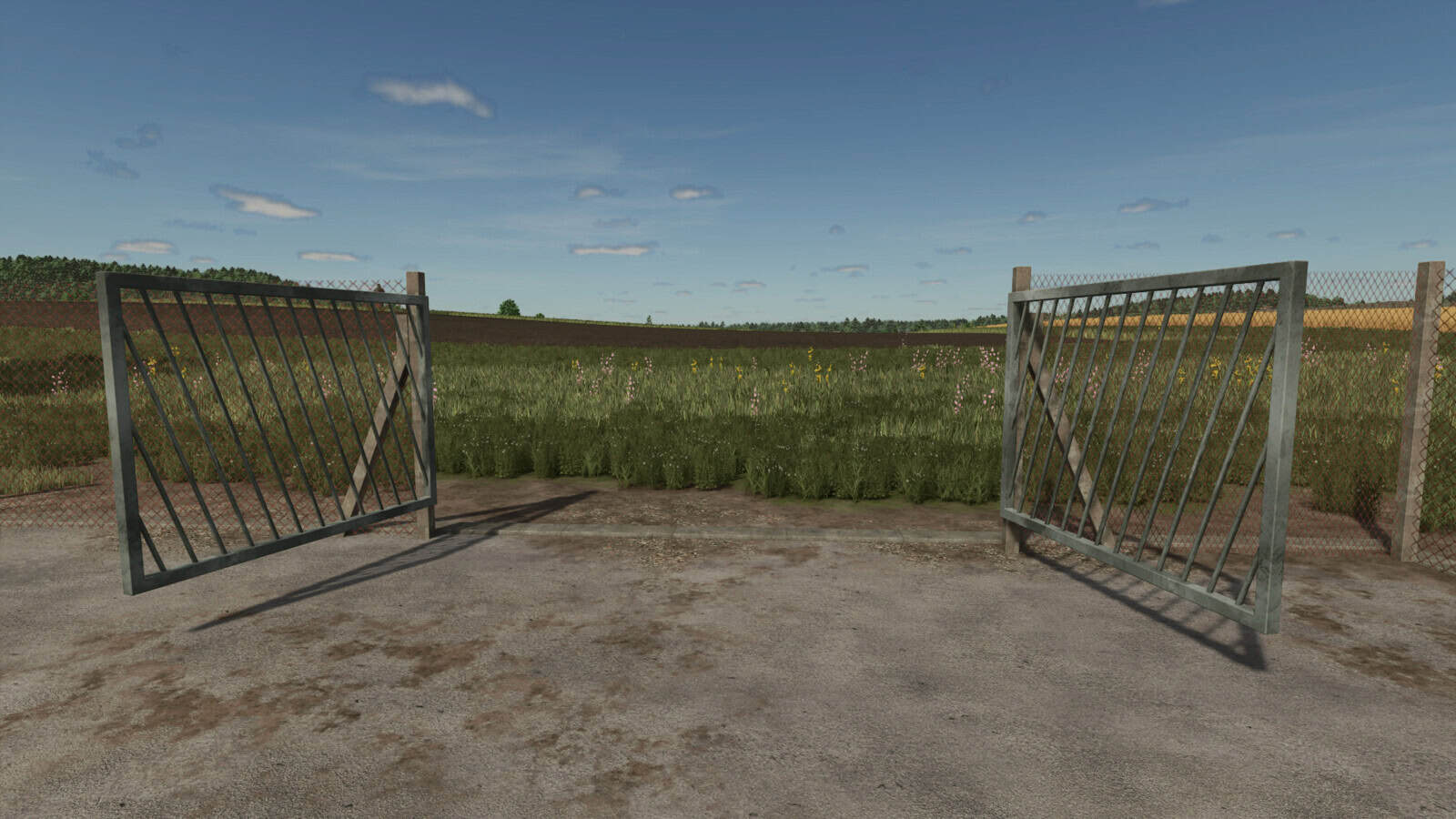 GDR chain link fence for your yards, the fence can also be placed on slopes, additionally there is also a gate with two wings and 4.5m passage. The fence is in the category Fences.