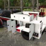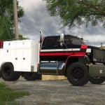 Service and fuel truck. The volume of transported fuel is 1500L. The activation point of service functions is located near the rear right wheel. All sections of the service platform are opened (IC).