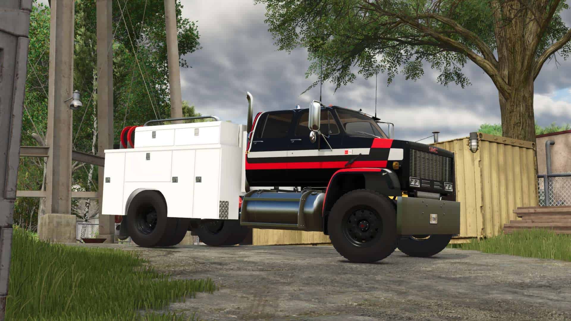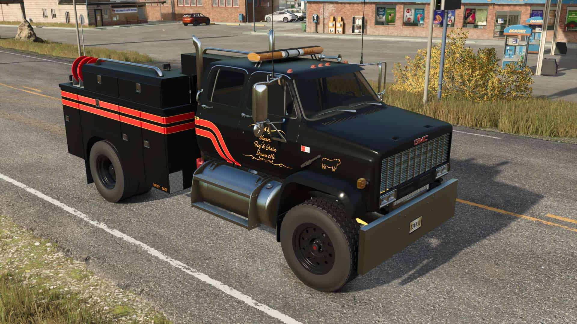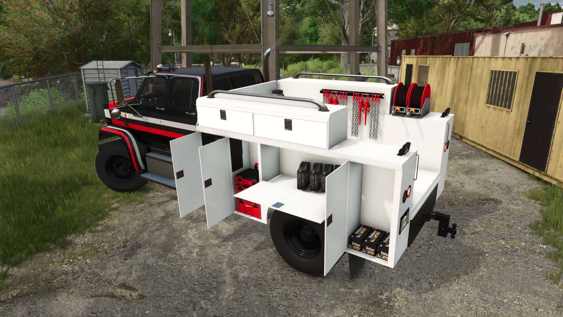 Service and fuel truck. The volume of transported fuel is 1500L. The activation point of service functions is located near the rear right wheel. All sections of the service platform are opened (IC).