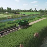 4x Map in Brandenburg (NW of Rhinow) Real terrain, fictional villages and roads (not a 1:1 recreation). 112 fields (1.4–53 ha), wooded areas, several farms, and integrated and freely placeable production facilities. Field paths and roads can be purchased via Farmland 113. Modder: FrankSt