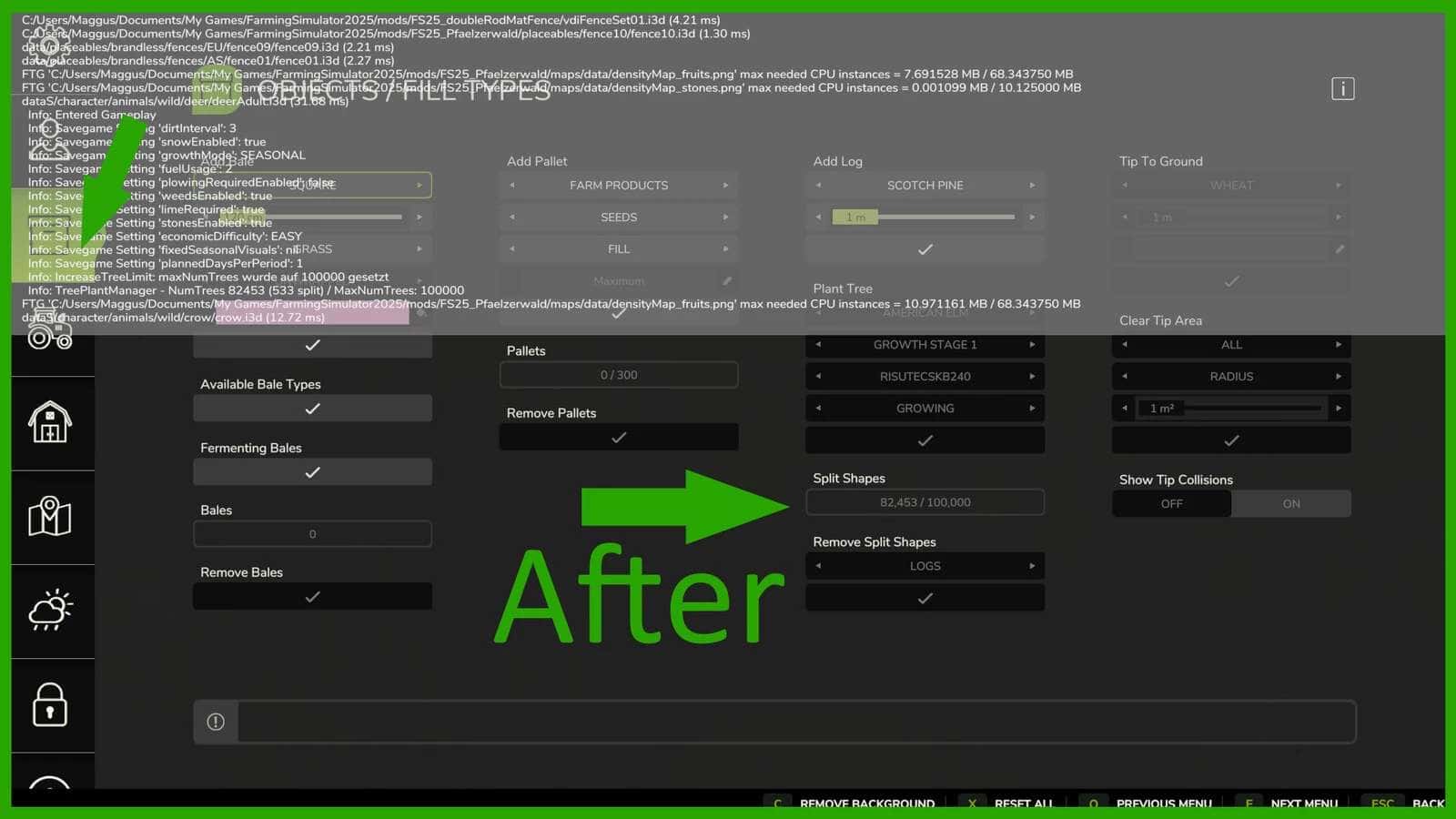 This script mod allows you to increase the maximum number of trees in a savegame. By default, the limit is 30,000 trees. With this mod you can set a higher or lower value in the modDesc.xml. Especially useful for map makers, forestry fans, and large-scale projects.