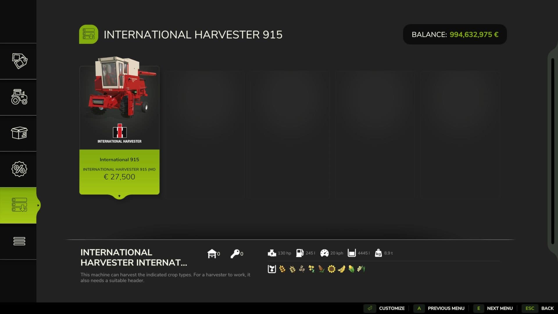 International 915 v1.0 FS25 Mods | 23 Feb, 2026 International 915 v1.0 A good old International 915 harvester, it’s old but still functionnal! – Price : 27.500€ – Power : 130hp – Top speed : 20 km/h – Capacity : 4.445L Author: Outpost Dairy Oldiron1214 (model) Crusader Modding Midwest 1967 JCL\'s Farm Equipment (various small things) This content was uploaded by our website visitors. If you notice any errors, please let us know.