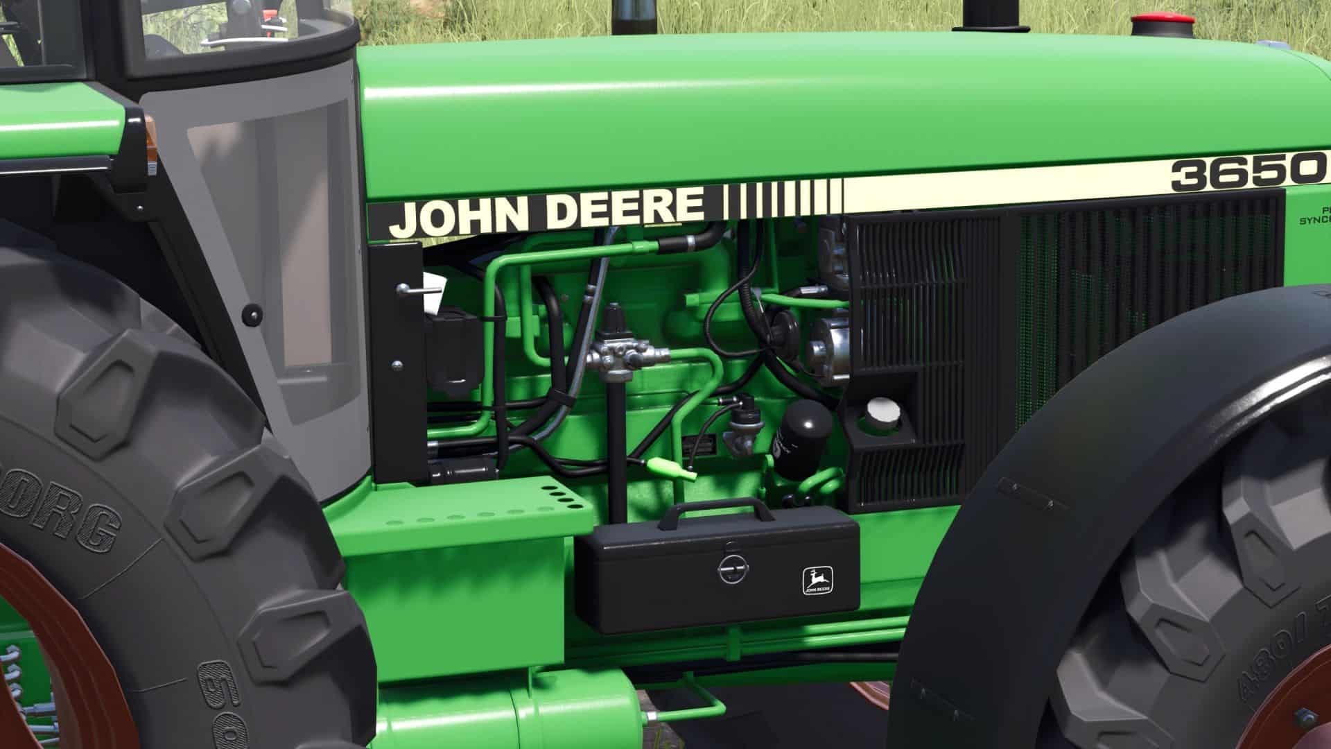 The John Deere 3650 model was a standard tractor from the 50 series, built from 1986 to 1993. It represented the top model of the 50 series produced in Mannheim. Due to its power, the John Deere 3650 was offered exclusively as an all-wheel-drive variant. With the 50 series, the proven, but cost-intensive block construction in Mannheim also ended. Starting in 1992, John Deere used an all-steel bridge frame concept, implemented in a modular design. Enjoy your tractor!