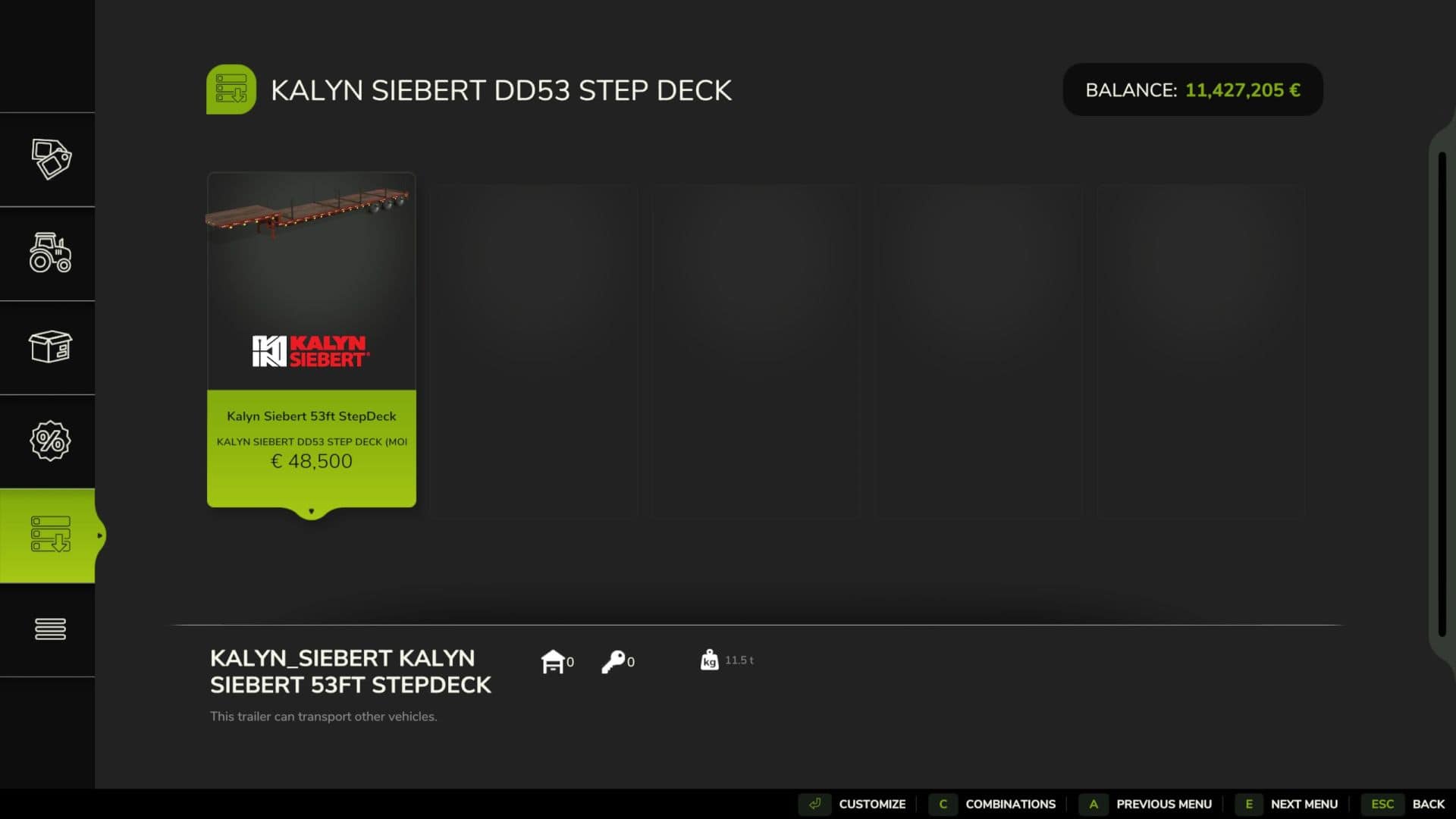 What you have here is a Kalyn Siebert 53ft stepdeck, perfect to transport vehicles with your semi trucks. Must have Interactive control mod. Has pipe bunks on ic, flags, signs and lots of options.