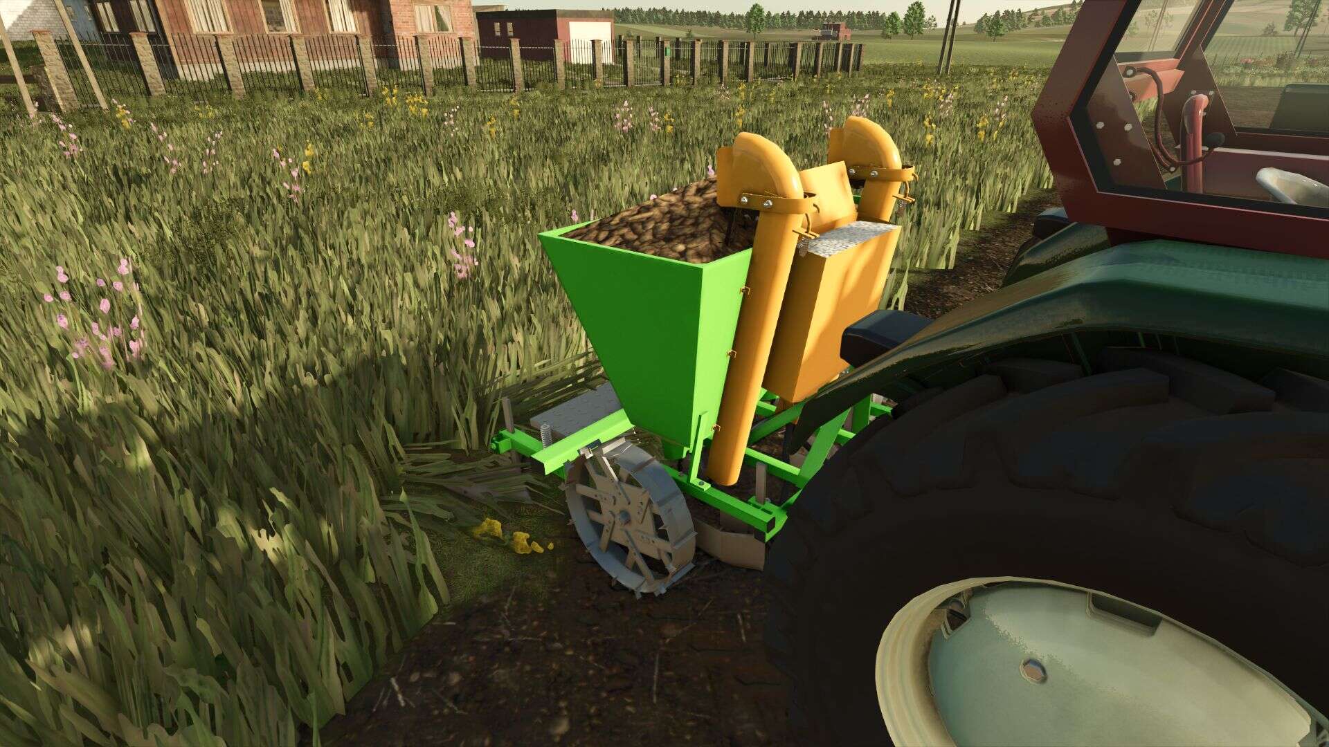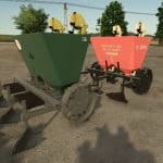 This is a Polish two-row planter produced by various companies. This is a conversion from FS22, although I added some of my own improvements. It has 6 color configurations, configuration of the model, platforms, fertilizer tank, stickers, and drive wheel settings. The modification also allows you to sit on the platform as a passenger (although the external camera has some imperfections). It has its own sounds. It has working animations of potato buckets and fertilizer dispenser drive. The planter does not need to be turned on to start it, just lower it. It is compatible with the More Realistic mod.