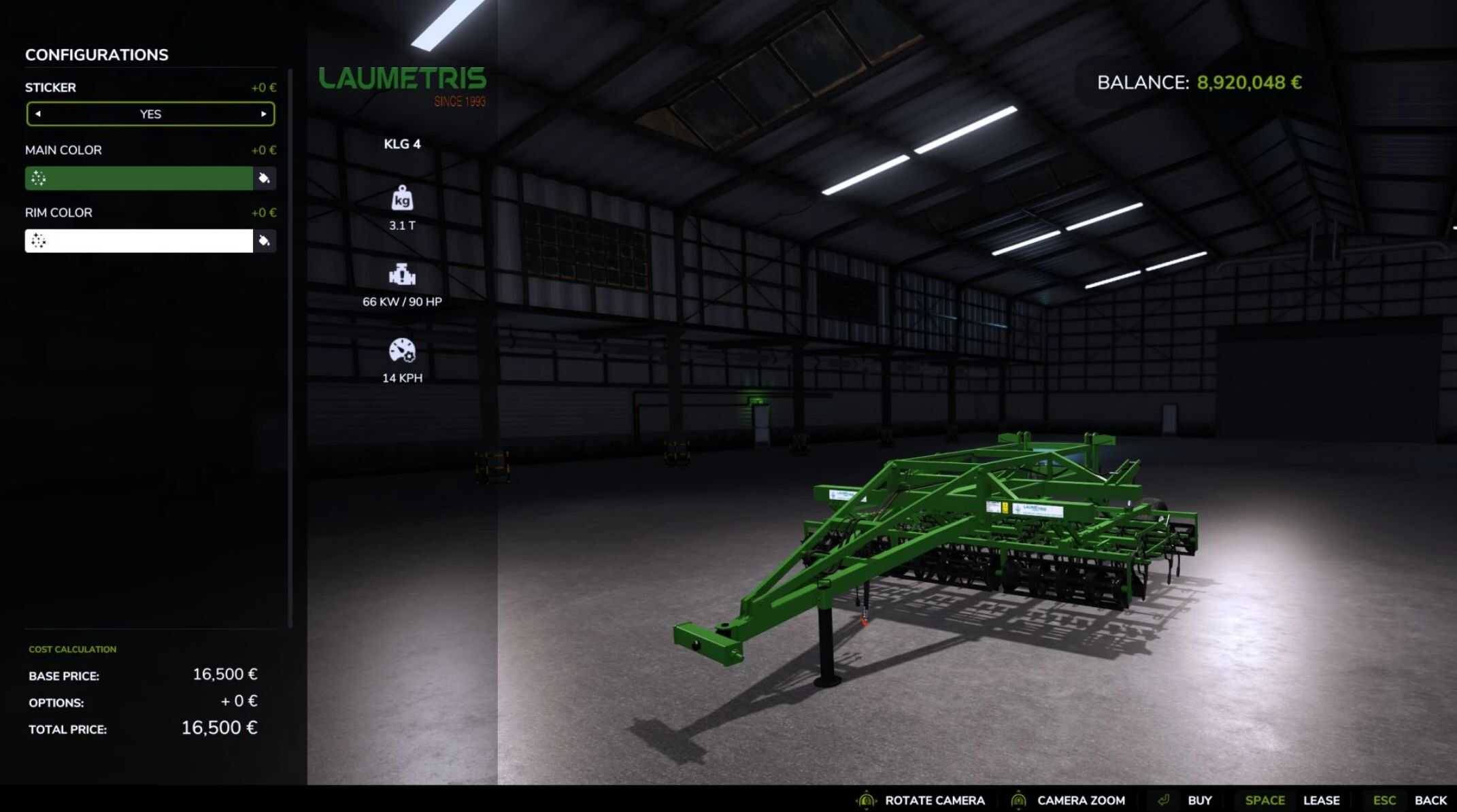 Laumetris KLG Pack Edit v1.0.0.1 FS25 Mods | 6 Nov, 2025 Laumetris KLG Pack Edit v1.0.0.1 V1.0.0.1 – Added workingWidth – Fixed collisions – Added Main Color – Price: 16500-24500 € – Max working speed: 14 kph – Operational depth to 8 cm. – Working width: 4m-7.5m – Horsepower Needed: 90hp-200hp Author: BullES JonasM This content was uploaded by our website visitors. If you notice any errors, please let us know.