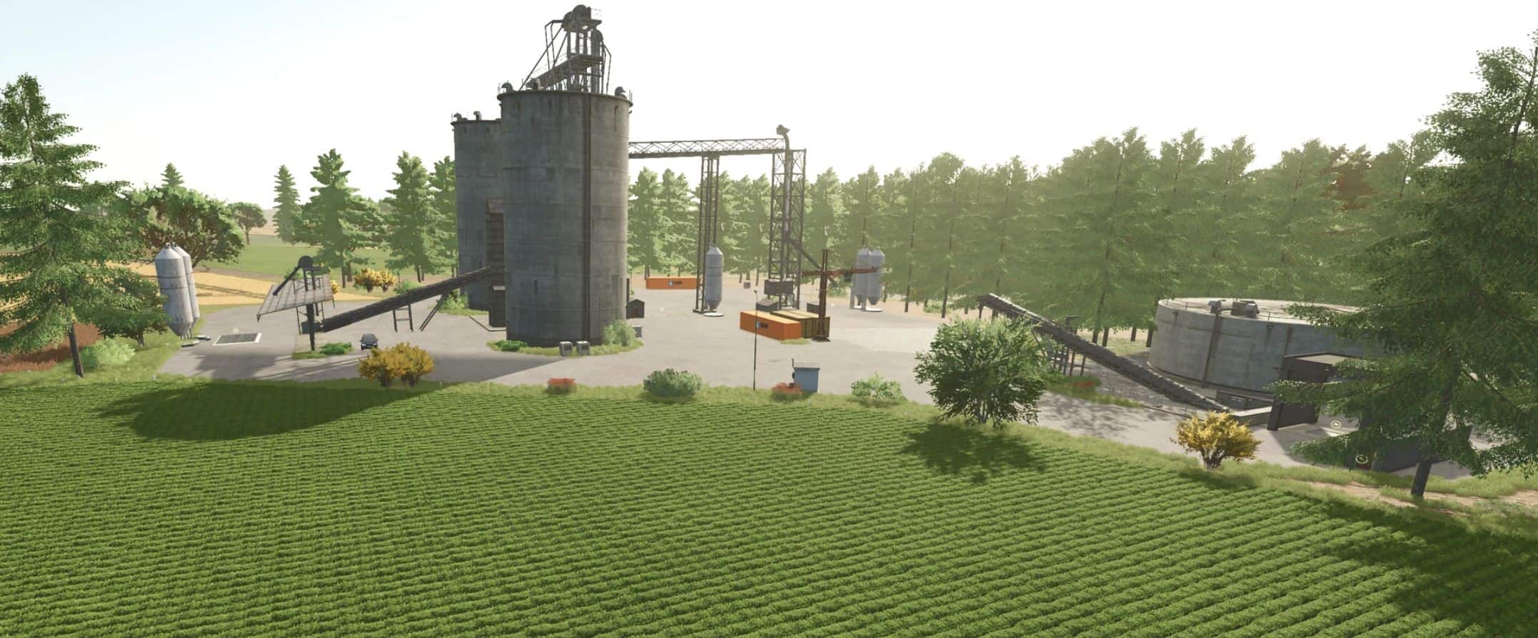 – In the center of the map, there is a starting farm with vehicles and 3 fields
