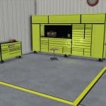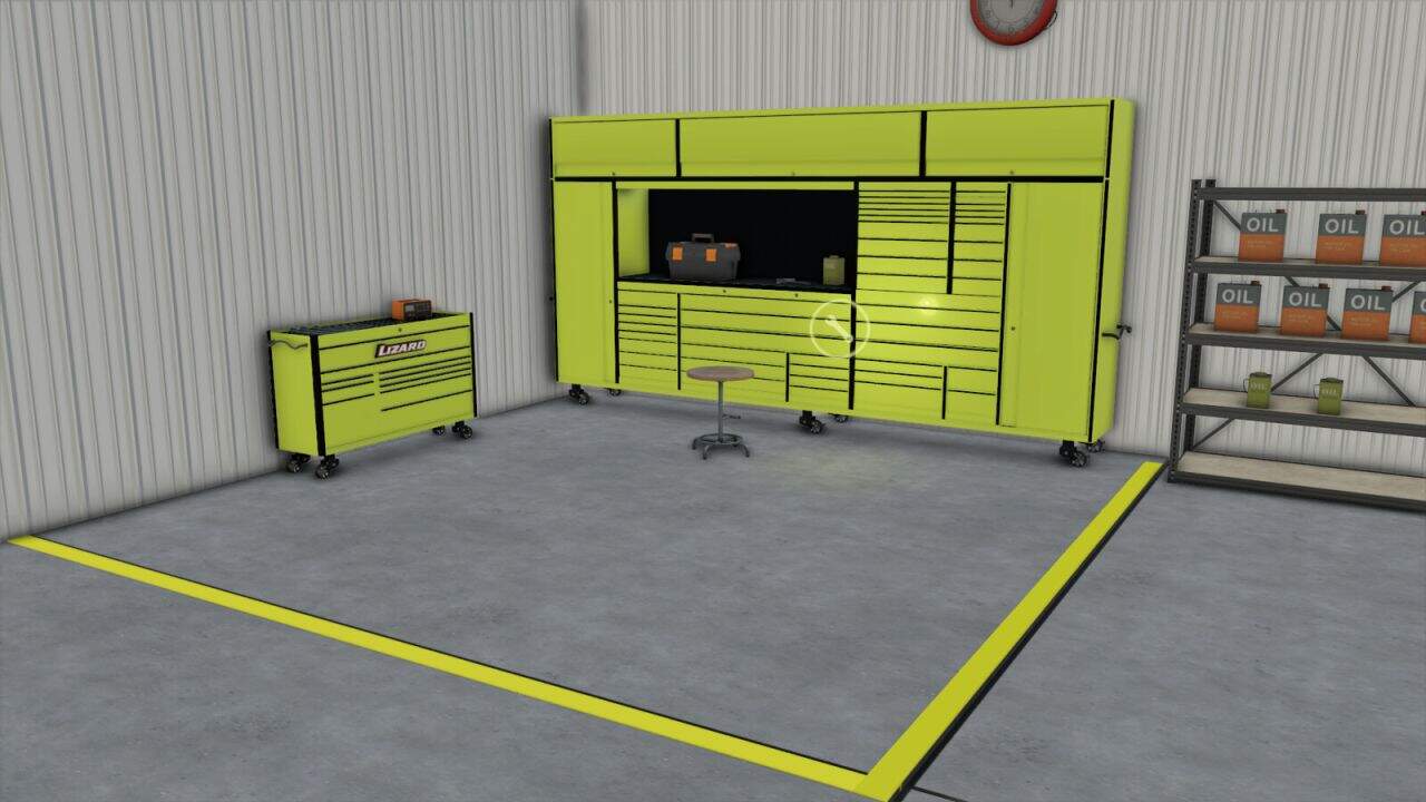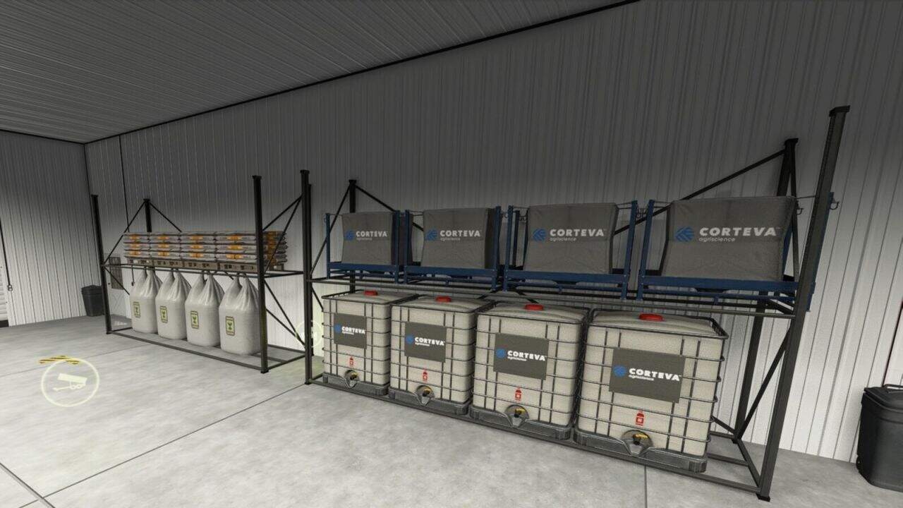Metal shed with living, work and storage area. Building has lighting inside and automatic outside. In work area You can storage crops, machines, pallets and Big Bags on shelves with AutoLoad and repair/repaint/customize or sell vehicles. In living area You can change Your outfit and sleep.