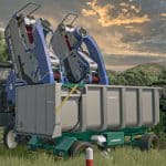 Set of single-body tipper trailers made of stainless steel, designed for transporting grapes. Equipped with wide, low-profile wheels to facilitate unloading from grape harvesters and lifting trailers.