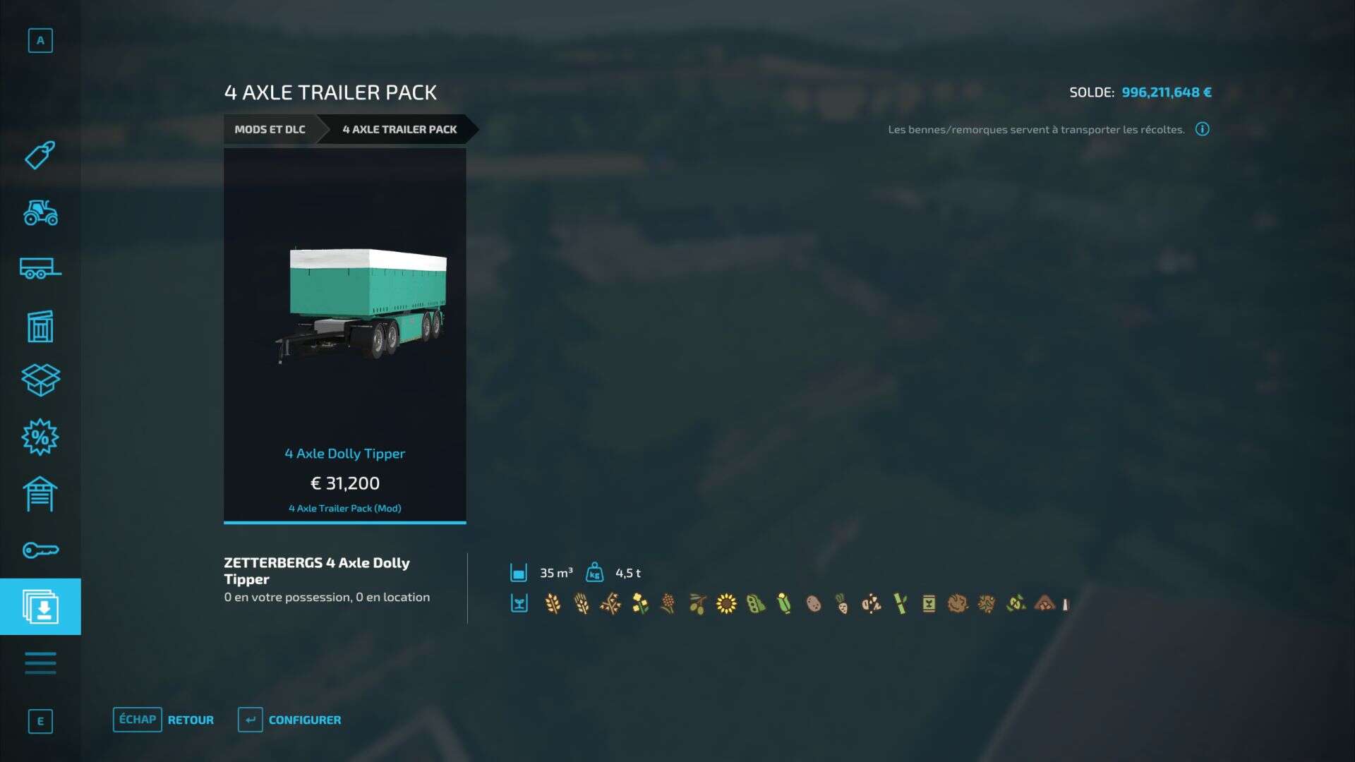 A 35.000L semi trailer that’s perfect for transport your big harvests from the fields to the farm.