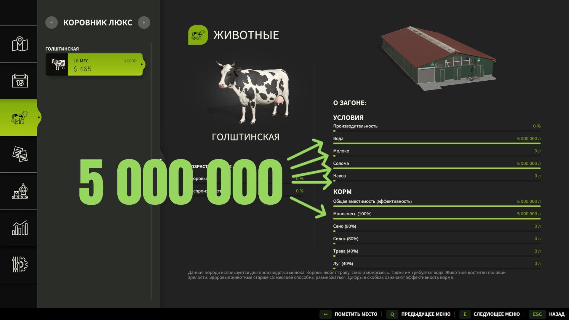 The cost of a cowshed in the game is 1,000,000 euros.