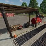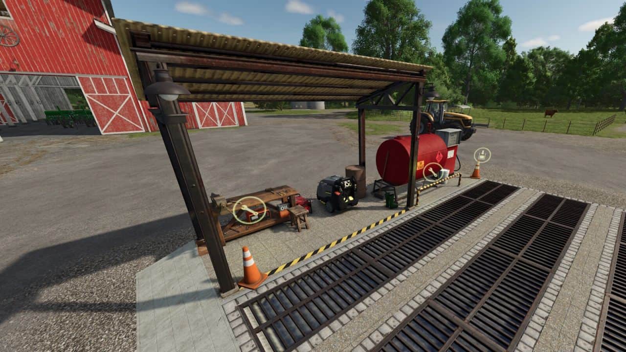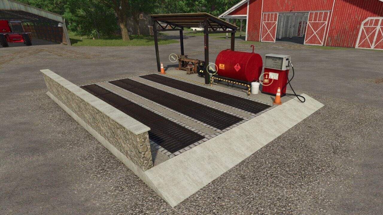 – Car wash bay with gas station and workshop.