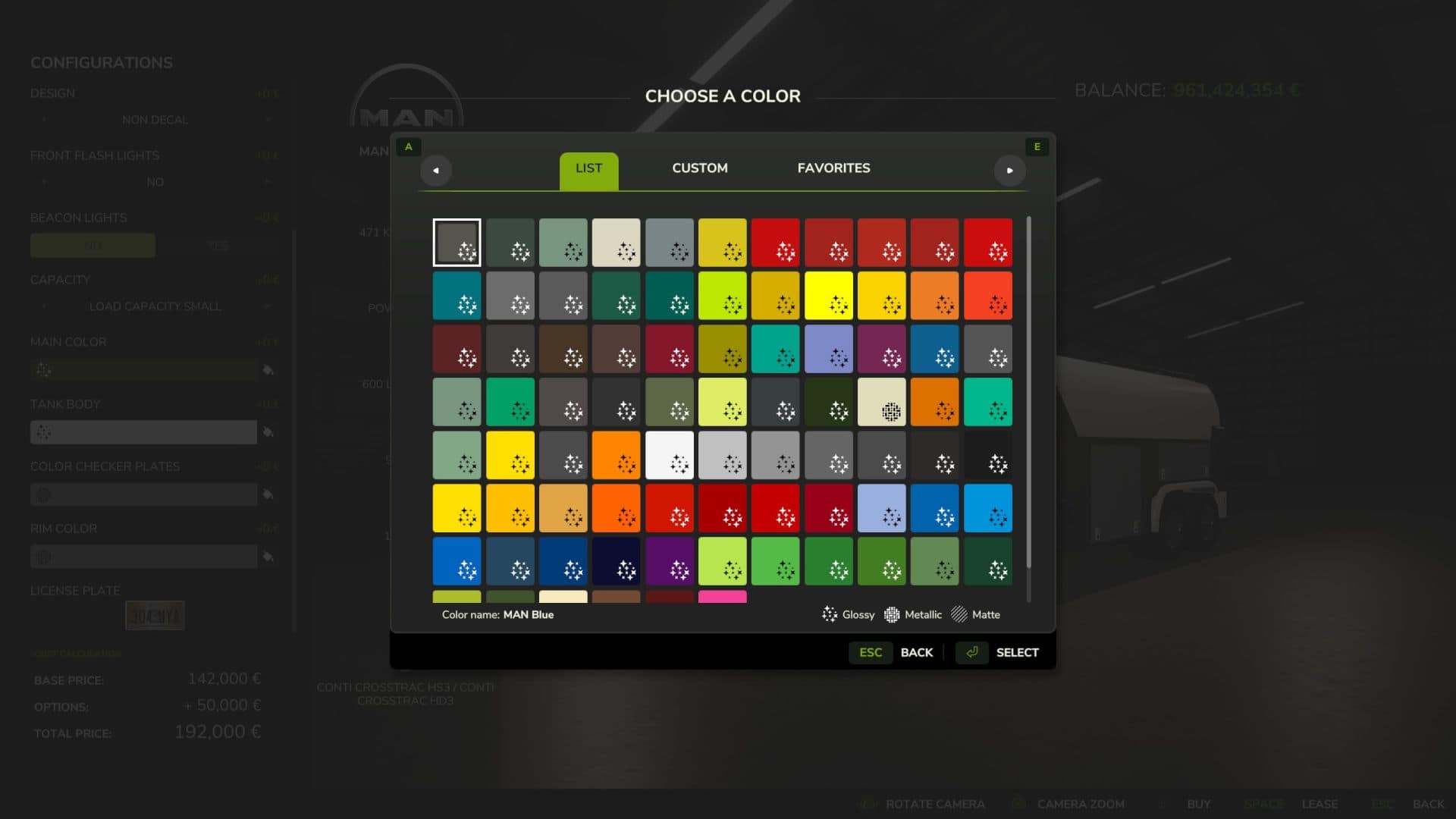 – Main color (cab and frame)