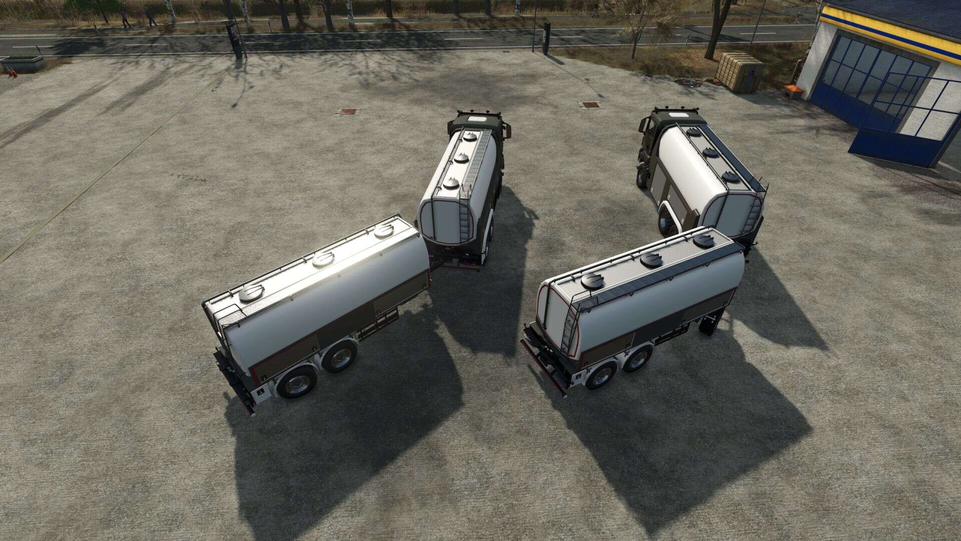 This pack includes a milk truck and 2 matching trailers. To load, the lids must be opened, by default using the N and Y buttons. You can find the truck and the 2 trailers in the “transport barrels” category under animal husbandry.