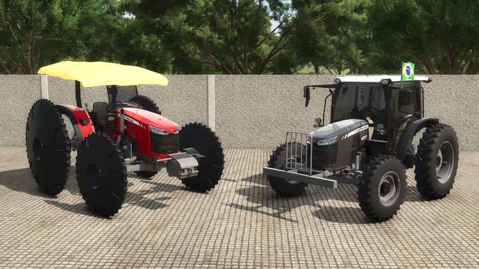 This model also features rice field wheels from SCARABELOT, a Brazilian brand officially licensed in Farming Simulator.