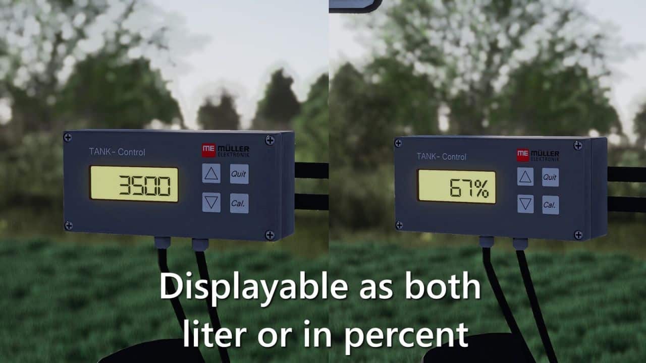 The ME Mueller Elektronik Display Prefab displays the fill level of attached implements or trailers on the vehicle. An installation guide can be found in this file (prefabDesc.xml).